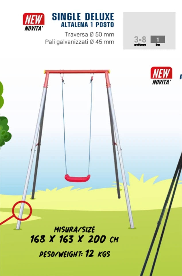 Altalena con pali in acciaio galvanizzato sicuro, robusto e durevole e con 1 sedile in plastica resistente, metacrilato