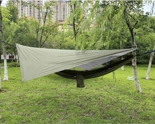 "Provate il massimo comfort e protezione nella natura con questo set di amaca da viaggio di alta qualità. Che si tratti di un trekking, in campeggio o semplicemente nel proprio giardino, questo modello è perfetto per tutti coloro che apprezzano la comodità e la funzionalità. La combinazione di materiali durevoli e design sofisticato rende questa amaca un compagno ideale per le avventure all'aria aperta. Grazie al robusto tessuto in nylon, è particolarmente resistente agli strappi e supporta facilmente fino a 250 kg. L'ampia superficie offre spazio sufficiente per una o due persone e garantisce il massimo comfort ad ogni utilizzo. Un punto di forza speciale è la funzione zanzariera integrata, che offre protezione da fastidiosi insetti e allo stesso tempo consente una circolazione ottimale dell'aria. La rete è fissata con una pratica cerniera in modo che possa essere facilmente aperta o chiusa a seconda delle necessità. Inoltre, la copertura in dotazione garantisce protezione da pioggia, rugiada mattutina o luce solare intensa. La struttura impermeabile garantisce che tu rimanga asciutto e confortevole in qualsiasi condizione atmosferica. Per una facile maneggevolezza, il set è dotato di moschettoni robusti, cinghie di fissaggio e picchetti, che consentono un montaggio sicuro e veloce. L'amaca è pronta per l'uso in pochi minuti, senza attrezzi aggiuntivi. Dopo l'uso, può essere ripiegato per risparmiare spazio e riporlo in una borsa compatta. Il peso ridotto li rende un pratico compagno per tutte le avventure, sia nel bosco, in montagna o al lago. Che tu voglia rilassarti, dormire all'aria aperta o semplicemente fare una pausa durante il viaggio, questo modello ti offre il massimo comfort e protezione in qualsiasi ambiente. Ideale per gli appassionati di attività all'aria aperta, gli amanti della natura e tutti coloro che non vogliono rinunciare alla comodità in movimento.»