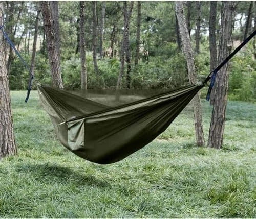 Salvaspazio e facile da trasportare: l'hamak può essere facilmente riposto nella sacca in dotazione e si adatta a qualsiasi zaino. Perfetto per bushcraft, trekking o ore di relax in giardino
