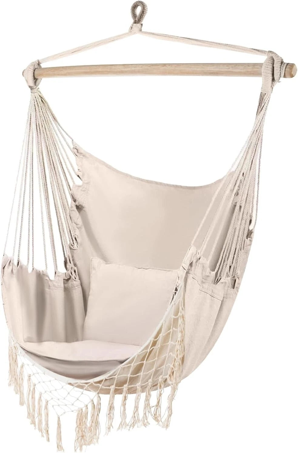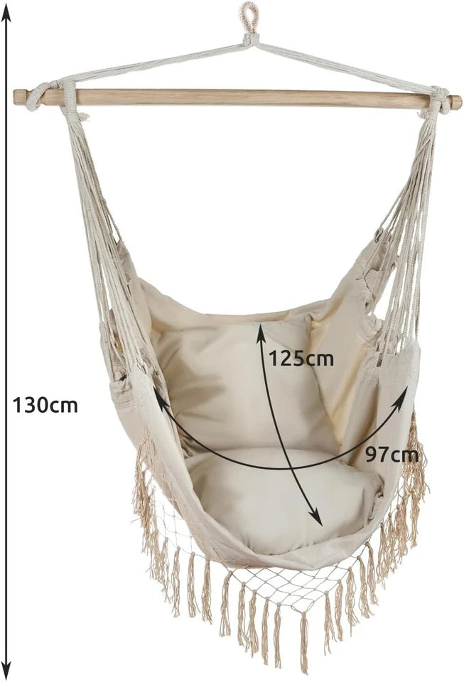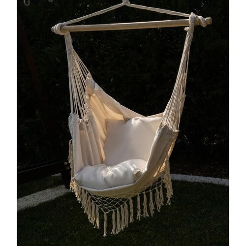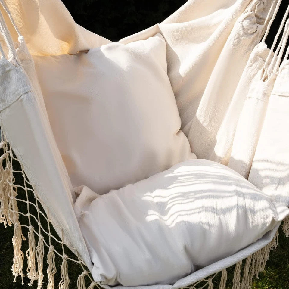 2 cuscini inclusi: per offrire il massimo comfort durante il riposo, al set di sedie sospese sono stati aggiunti due comodi cuscini che formano uno schienale morbido durante il relax.