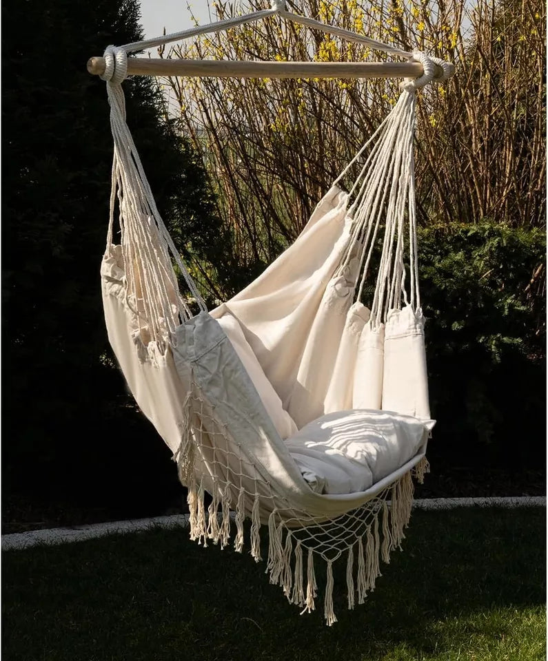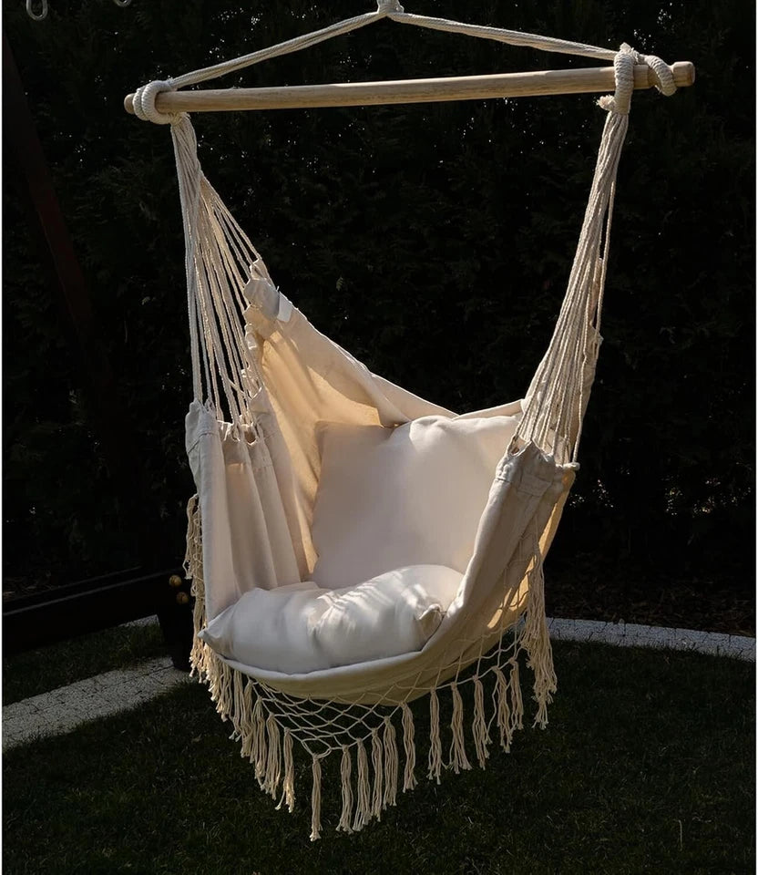Confortevole - Questa sedia brasiliana estremamente comoda e funzionale, consente di rilassarsi in condizioni confortevoli. L'altalena è ideale per il giardino, la terrazza, il balcone e persino la stanza! È possibile utilizzare la poltrona sospesa per un pisolino pomeridiano, un breve pisolino o per rilassarsi con un libro o una rivista.