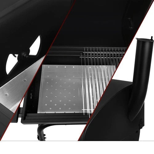 Regolazione dell'afflusso d'aria: camino + fori di circolazione + griglie - migliore controllo del calore, grigliatura più stabile con possibilità di affumicatura e spegnimento