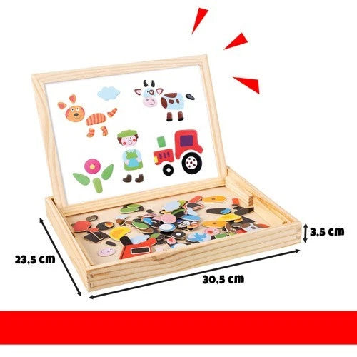 - La lavagna didattica bifacciale è un giocattolo creativo per bambini dai 3 anni in su che supporta l'apprendimento attraverso il gioco. Permette di disegnare, disporre i magneti e creare le proprie immagini, sviluppando le capacità motorie, il pensiero logico e l'immaginazione . La struttura in legno e i 108 pezzi colorati garantiscono resistenza e una vasta gamma di possibilità creative.