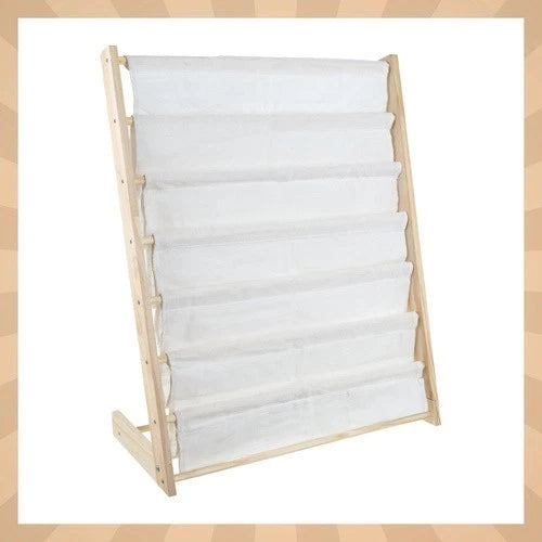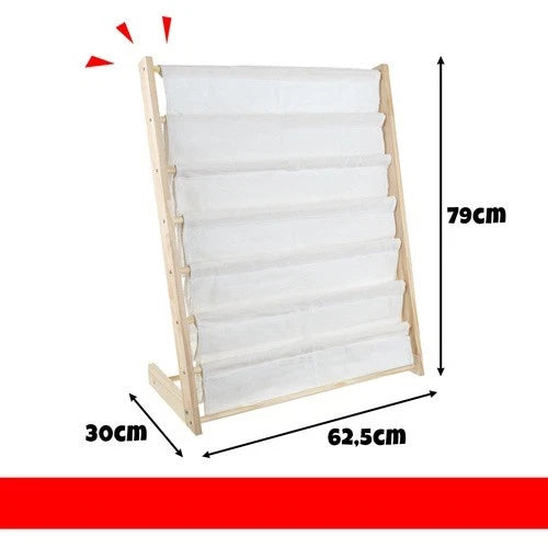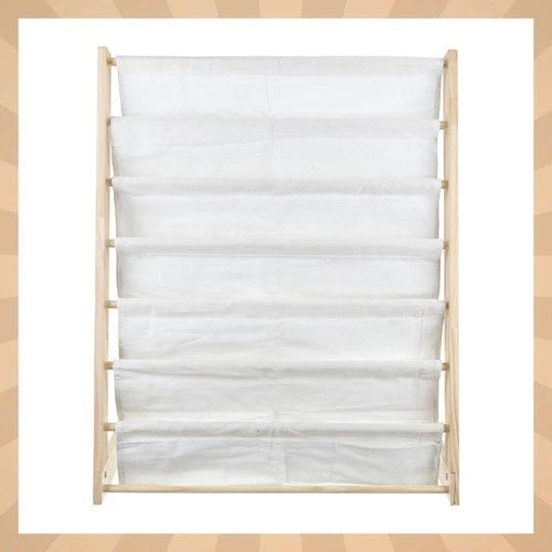 Libreria per bambini - Un ordine che il tuo bambino amerà fin dal primo giorno! 6 ripiani, legno + tessuto, 79×62,5×30 cm