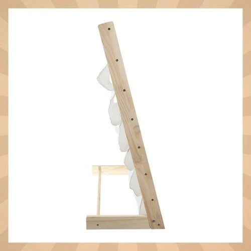 Una libreria per bambini, leggera, stabile e sicura, aiuta a tenere in ordine i libri, gli album da colorare e i tesori dei più piccoli. La sua altezza, adattata alle esigenze del bambino, facilita l'accesso indipendente e incoraggia la lettura. La struttura in legno con ripiani in tessuto unisce estetica e funzionalità, integrandosi perfettamente in interni sia moderni che classici.