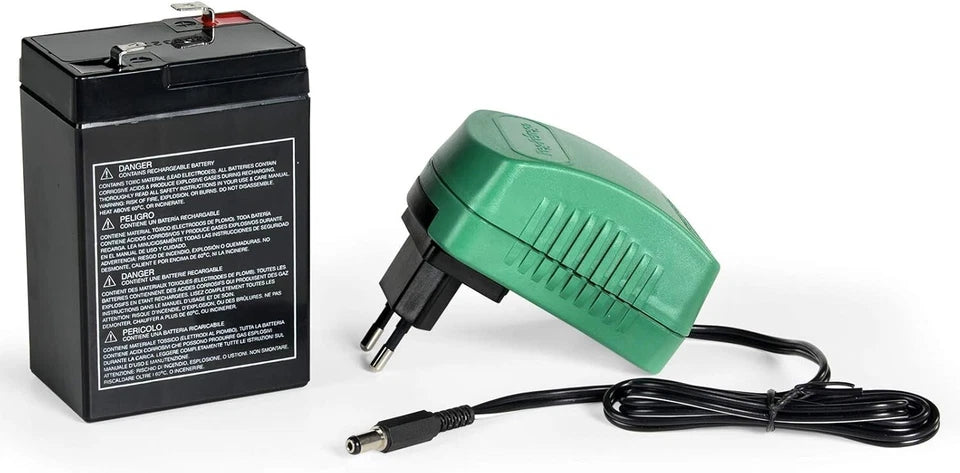 La moto funziona con una batteria da 6V-4,5Ah-5Wh e un caricabatteria per ricaricarla direttamente dal veicolo tramite la spina jack. Caricabatteria e batteria sono in dotazione.