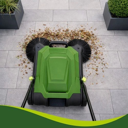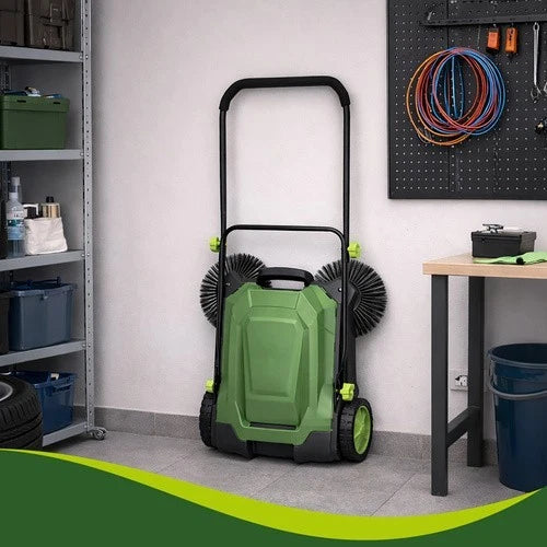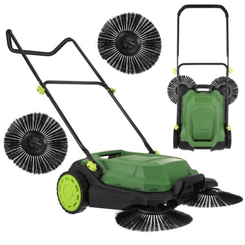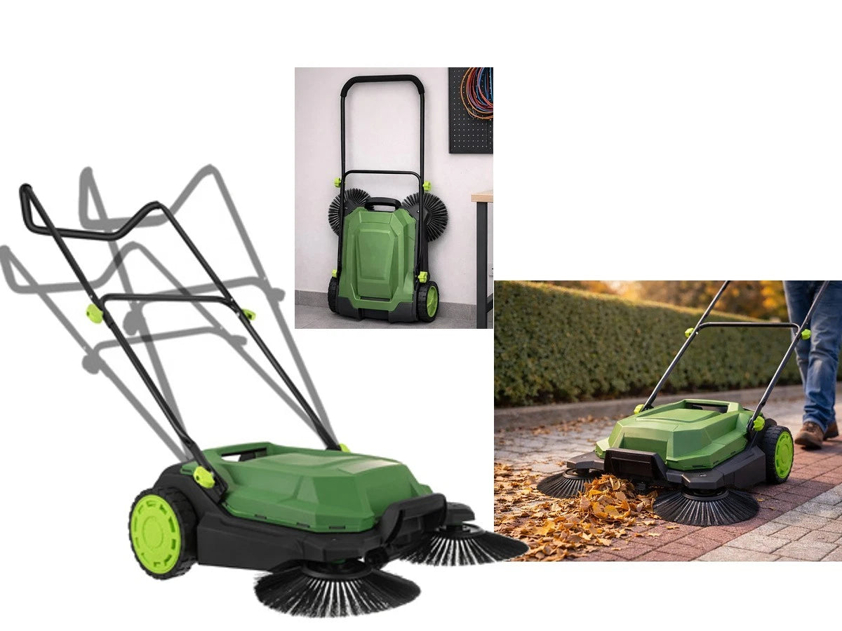 Spazzatrice Raccoglitore manuale per foglie su marciapiedi, terrazze, lastricati, 3 spazzole, 68 cm