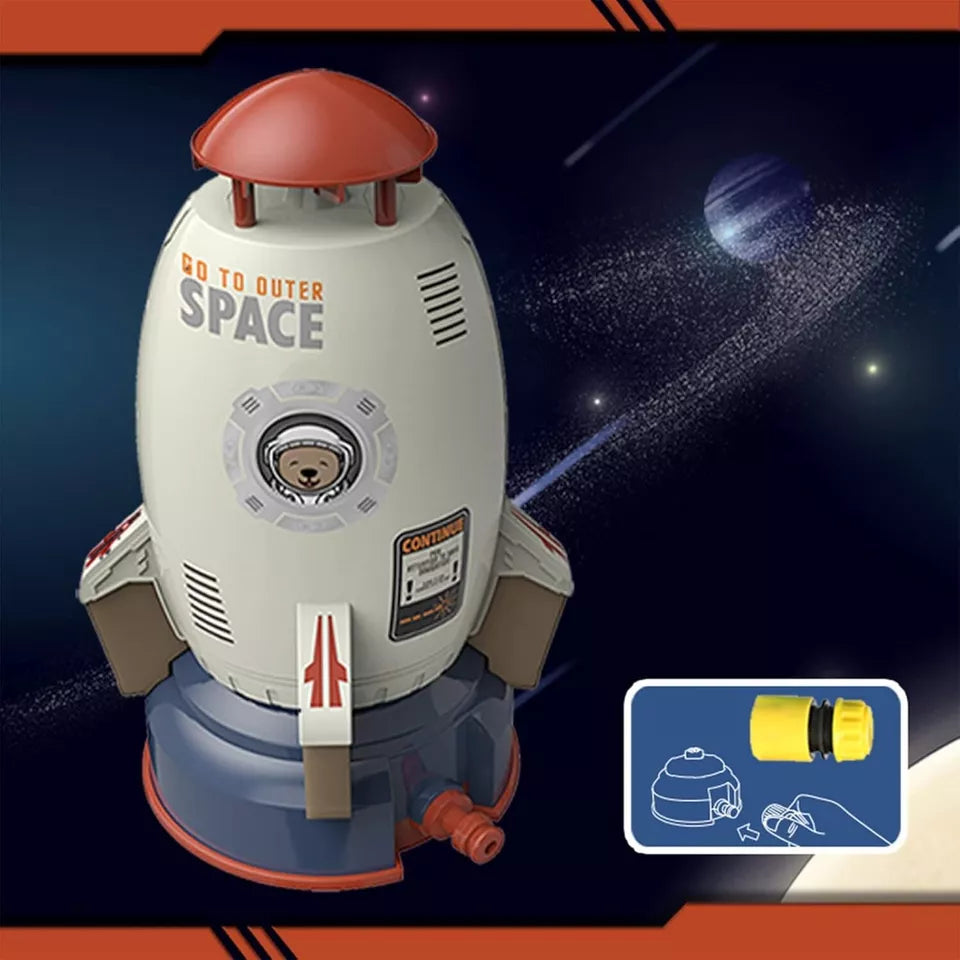 Irrigatore per bambini a forma di razzo, fontana, gioco d'acqua: divertimento estivo con collegamento al tubo da giardino!