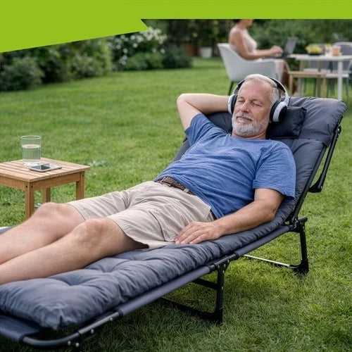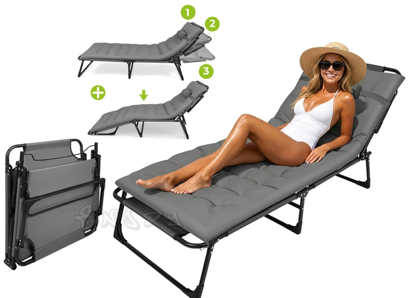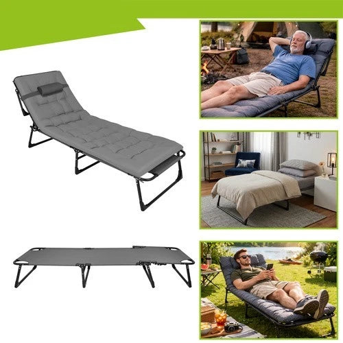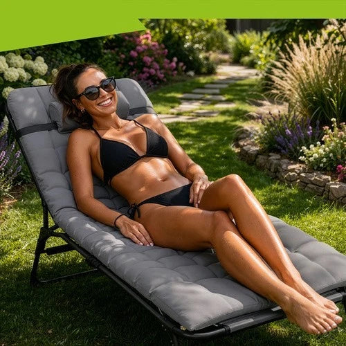Volete rilassarvi comodamente in giardino, in terrazza o in campeggio, ma le normali sedie a sdraio sono dure e scomode? Il nostro lettino pieghevole, con il suo spesso cuscino, offre un letto morbido e uniforme e permette di regolare la posizione per un relax perfetto.