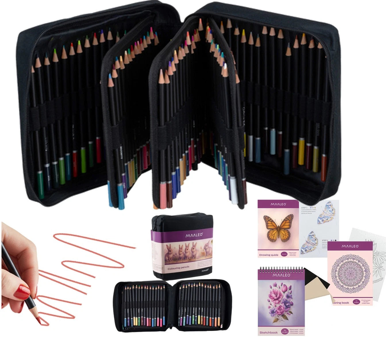 Art Set da 120 Colori - Pastelli per Dipingere e Colorare - Album da Disegno + libro da colorare + Custodia Portatile con Cerniera - Perfetto come Regalo