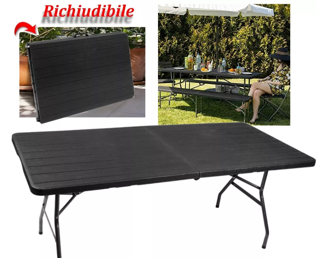 Tavolo pieghevole da giardino tavolino 180x75 richiudibile a valigetta x esterno